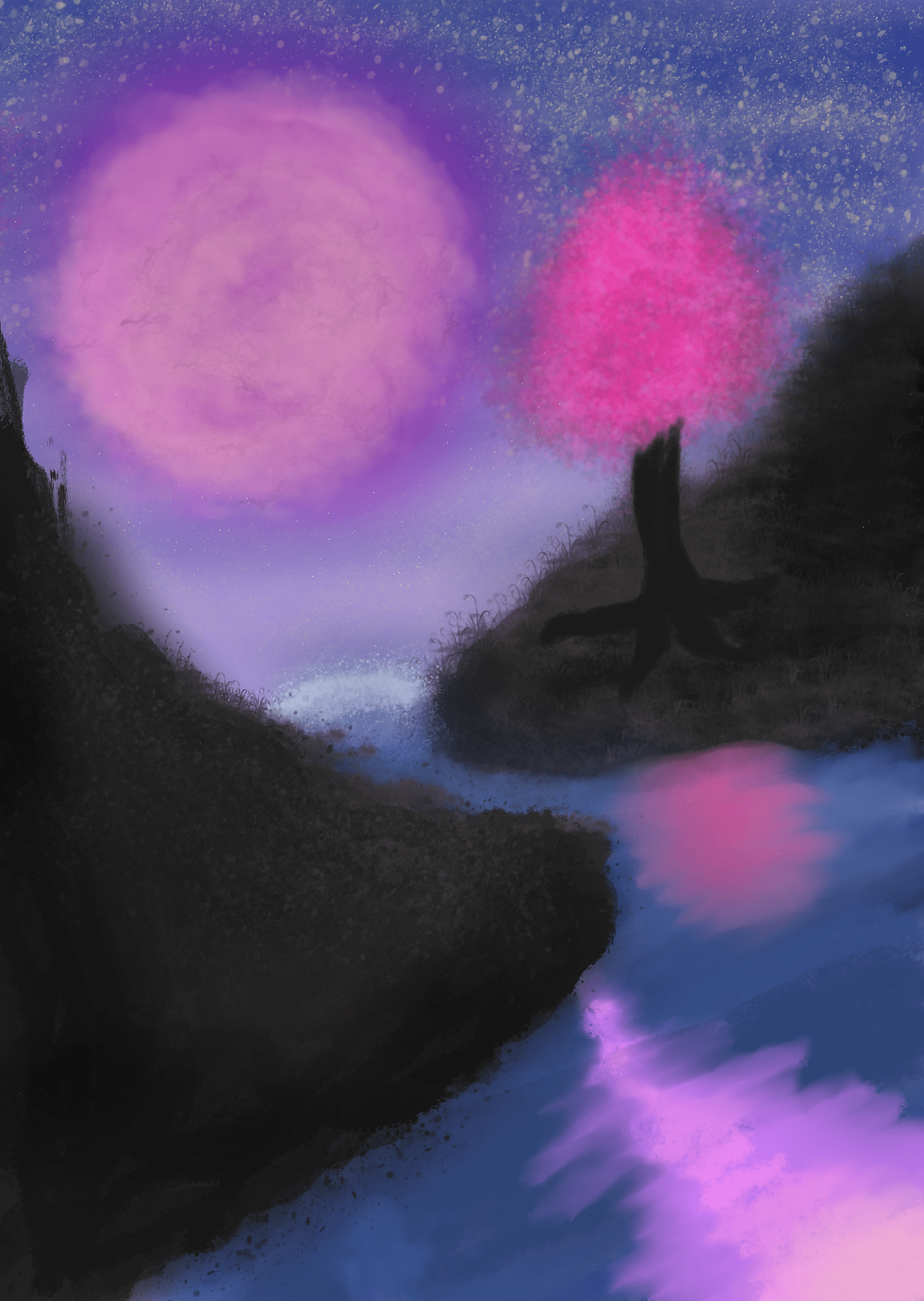 Moonlit Waterfall-Musings
